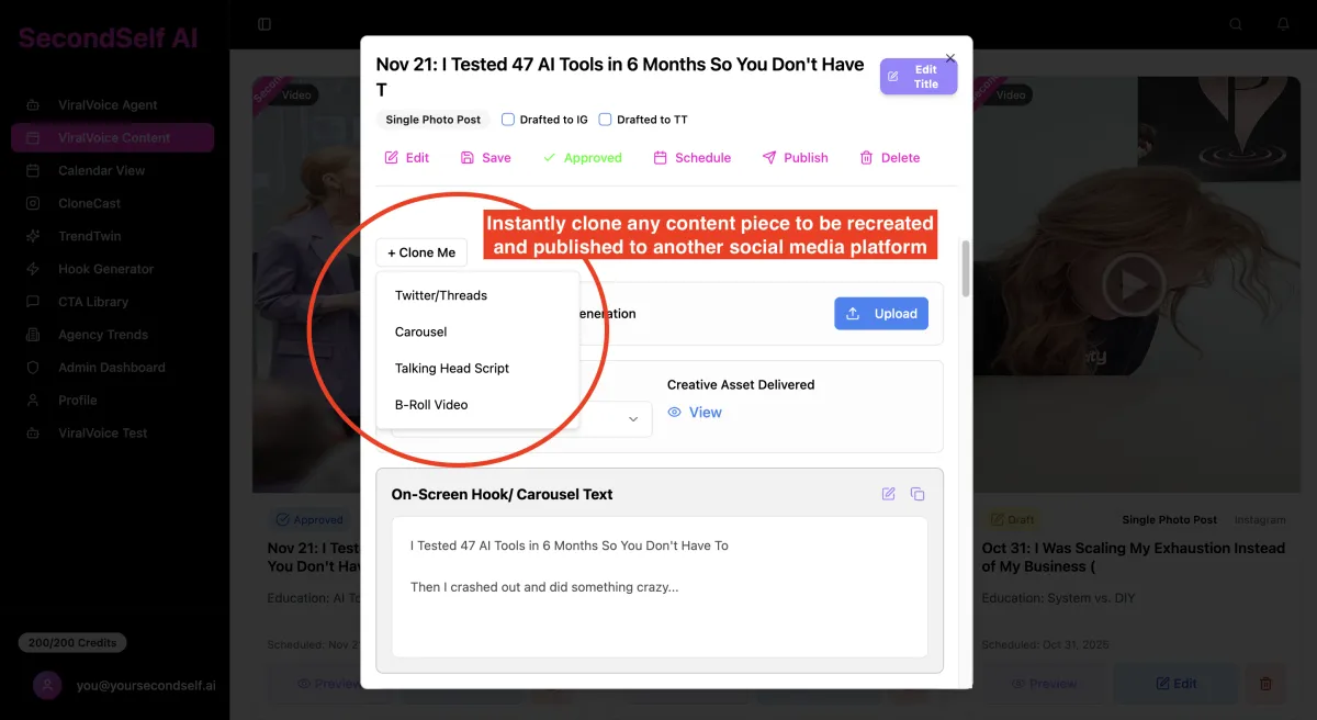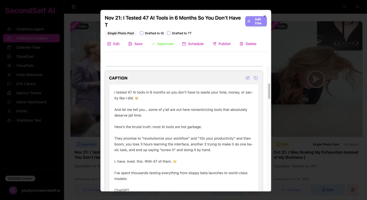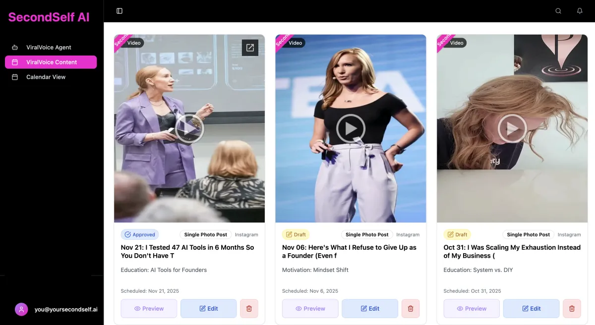 This framework is built into every piece of content SecondSelf creates, which is why our content consistently outperforms generic AI-generated posts.